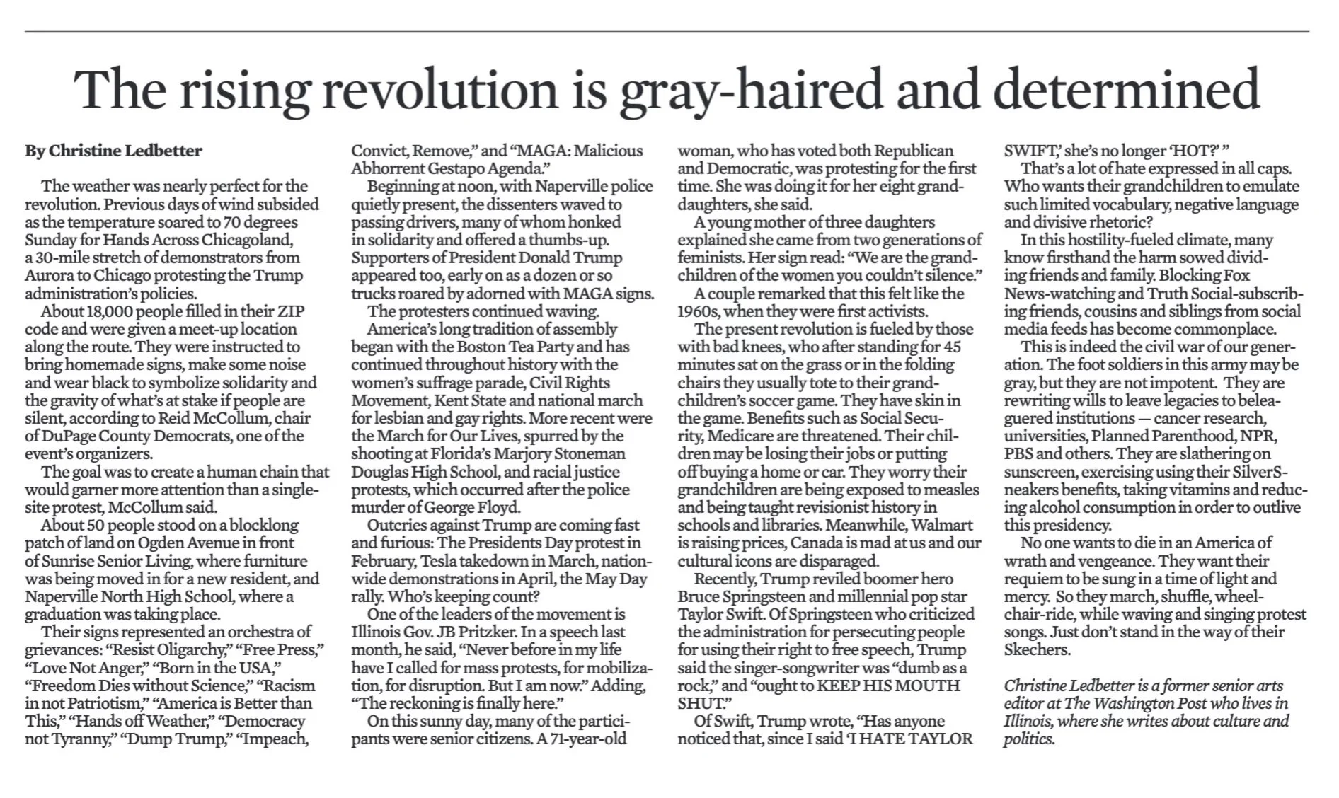 Christine Ledbetter is a former senior arts editor at The Washington Post who lives in Illinois, where she writes about culture and politics.