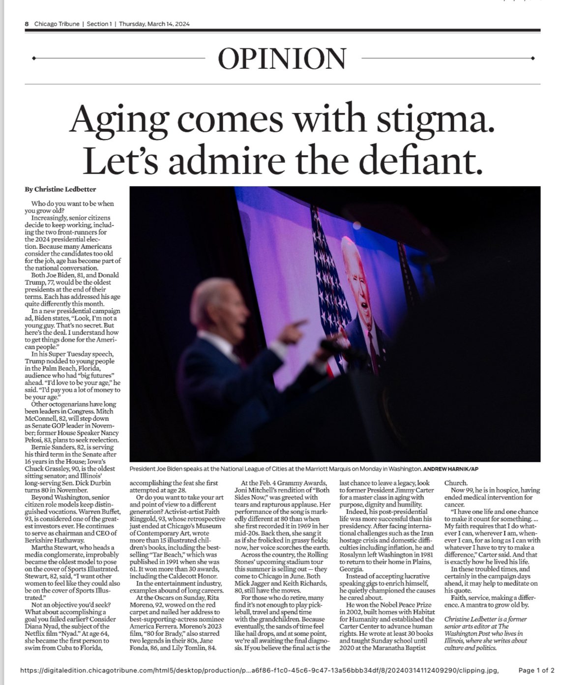 “Increasingly, senior citizens decide to keep working, including the two front-runners for the 2024 presidential election. Because many Americans consider the candidates too old for the job, age has become part of the national conversation.” – Published March 14, 2024, in the Chicago Tribune (Paywall)